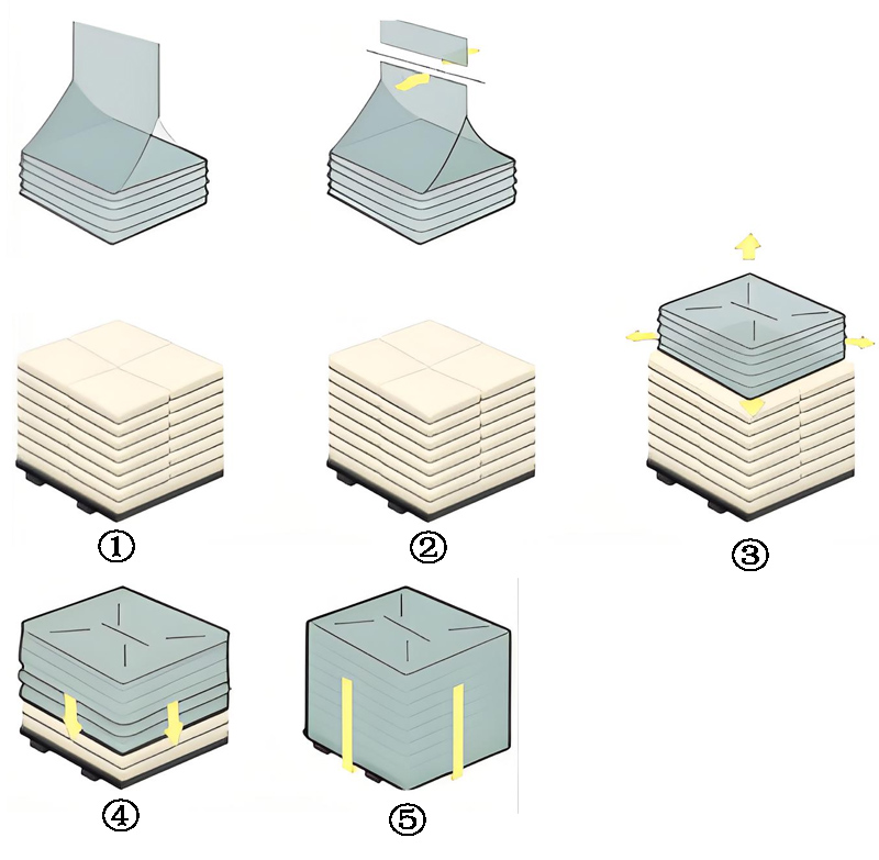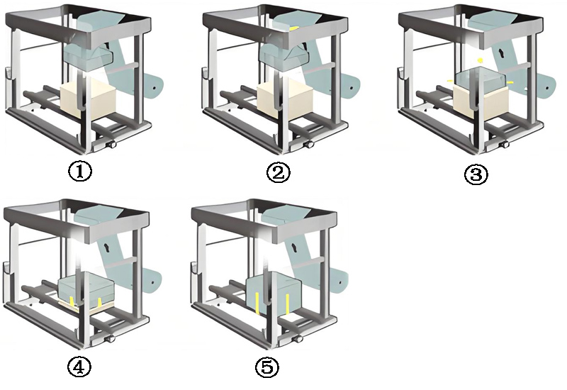 تم تصميم الماكينة لتغليف البضائع باستخدام فيلم التمدد. أثناء التشغيل، وعندما تدخل البضائع إلى منطقة عمل الماكينة، تحسب طول الفيلم المطلوب بناءً على ارتفاع الرصّة وأبعاد الطبلية. ومن خلال آليات الشد واللحام والقص والتغطية، يتم تطبيق الفيلم من الأعلى إلى الأسفل. وبالاعتماد على مرونة الفيلم وليونته، تحقق الماكينة تغليفًا محكمًا من خمس جهات حول البضائع. ويوفر التغليف الناتج مقاومة ممتازة للماء والرطوبة، وحماية من الثقب، وقوة تثبيت عالية، وثباتًا للرصة، مع الحفاظ على وضوح رؤية المحتويات. وتُستخدم هذه التقنية على نطاق واسع في صناعات مثل الكيماويات ومواد البناء والأجهزة المنزلية وأعلاف الحيوانات.